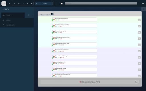 Les tests sont un moyen ouvert d'évaluer n'importe quel type d'information par rapport à une réponse immédiate de biofeedback. Tout professionnel peut créer autant de tests que nécessaire, les choisir et les évaluer pour n'importe quel client (localement ou à distance) et peut choisir de les partager (gratuitement ou contre rémunération) sur la place de marché des tests.