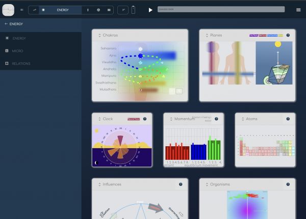 Disse grafer giver mulighed for at se informationer som chakraer, ur, planer, momentum, atomer, påvirkninger og organismer.