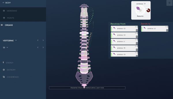 A csigolyák közötti kapcsolatok grafikus kiemelése itt látható; lehetőség van arra is, hogy megjelenítsük azokat, amelyek energetikai szempontból a legfigyelemreméltóbbak, azokat, amelyek többé-kevésbé izgatottak, és azokat, amelyek koherensek.